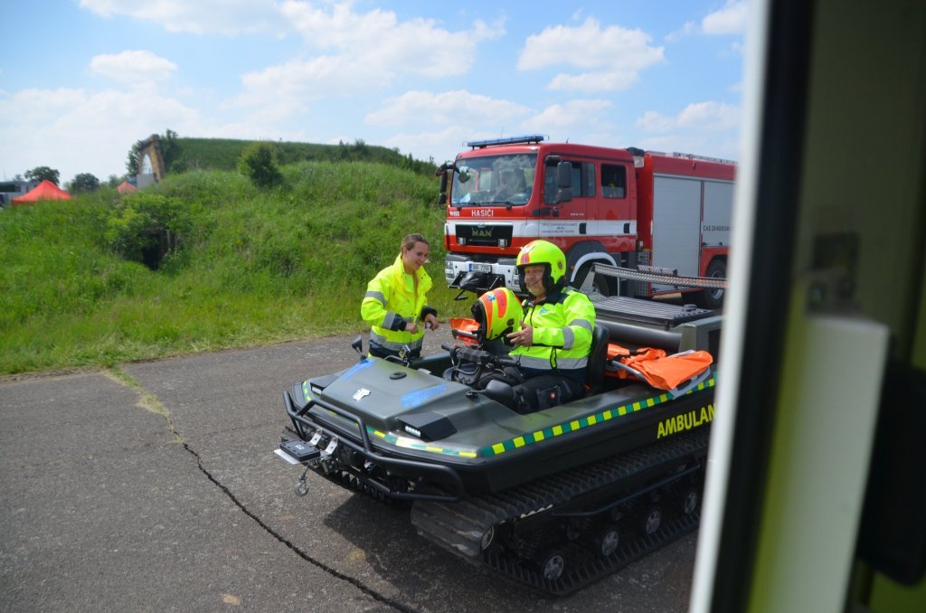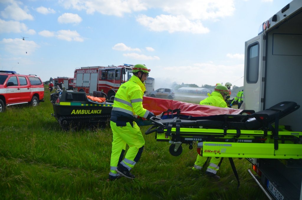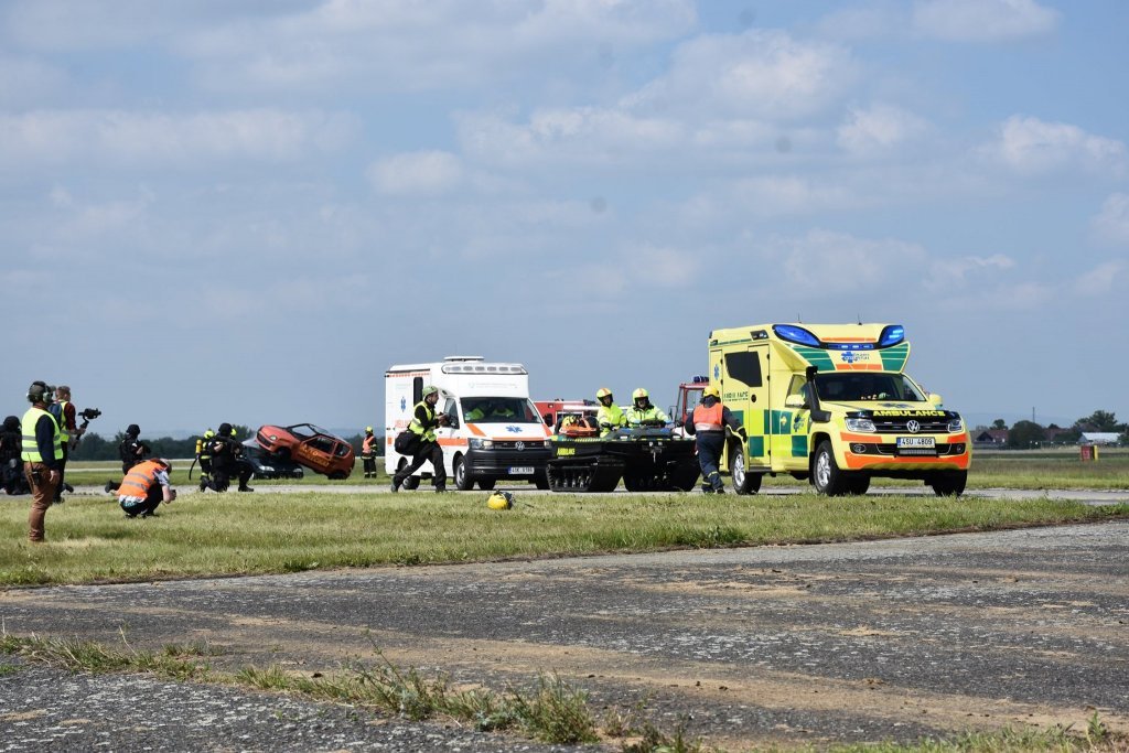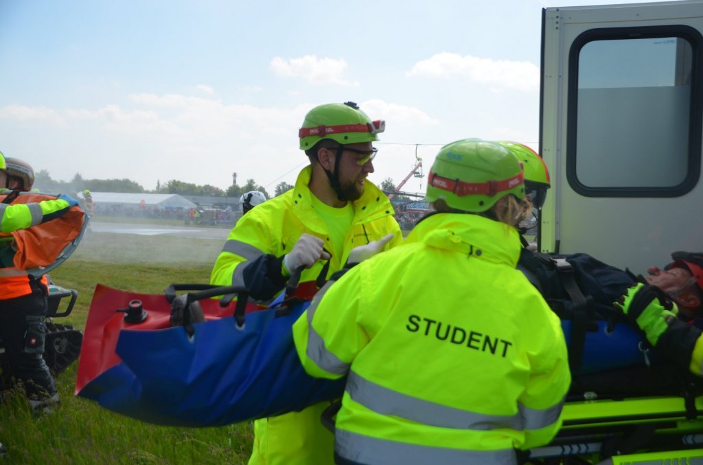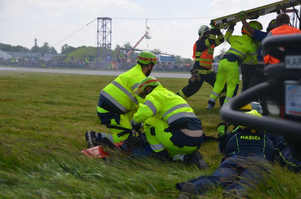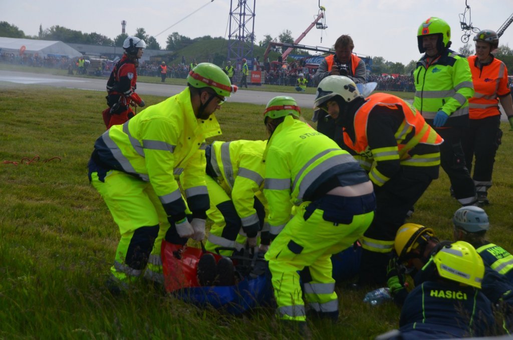 V pátek bylo prezentováno na statické ukázce sanitní vozidlo FZS. V sobotním programu, během ukázky zásahu složek IZS, byla sanitka FZS se studenty třetího ročníku oboru Zdravotnický záchranář zařazena do zásahu u hromadné dopravní nehody. V rámci této ukázky zásahu byla rozehrána situace napadení eskorty vězeňské služby výbušninou s neznámou látkou. Úkolem našich studentů bylo ošetření 3 zraněných a jejich transport z místa události. Zásah pozemních složek na simulovaném hromadném neštěstí doprovázel zásah celkem čtyř vrtulníků, z čehož dva stroje v režimu LZS a dva stroje na technický zásah.