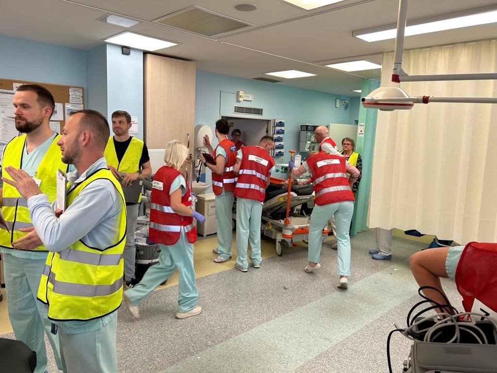 Po aktivaci tzv. červeného příjmu (srážka tramvaje s autobusem) bylo během 45 minut na urgentní příjem transportováno a perfektně odbaveno 15 zraněných. Celé cvičení bylo úspěšně ukončeno přibližně hodinu po aktivaci.